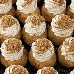 Meringue rocher choco lait et éclats d’amandes, Mousse de marrons, cœur biscuit châtaigne, marmelade cassis légèrement parfumé à la violette, crème de marron.